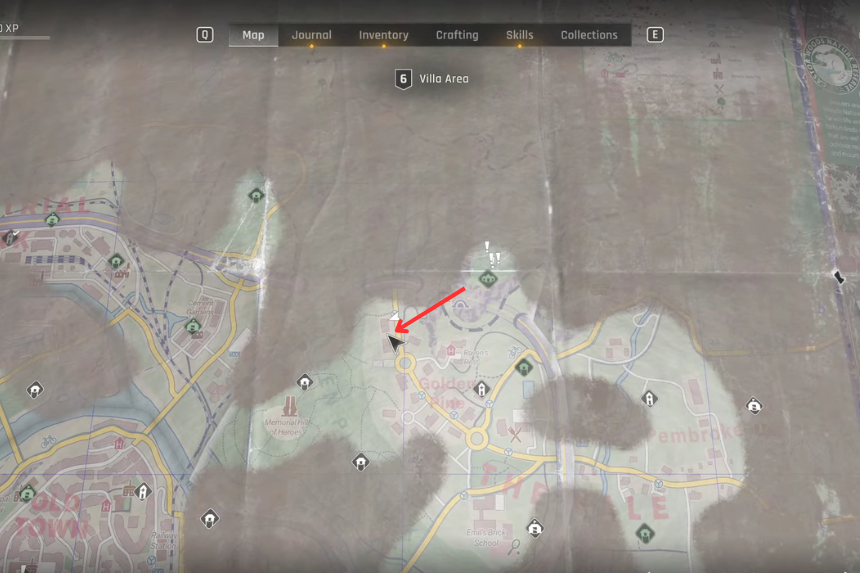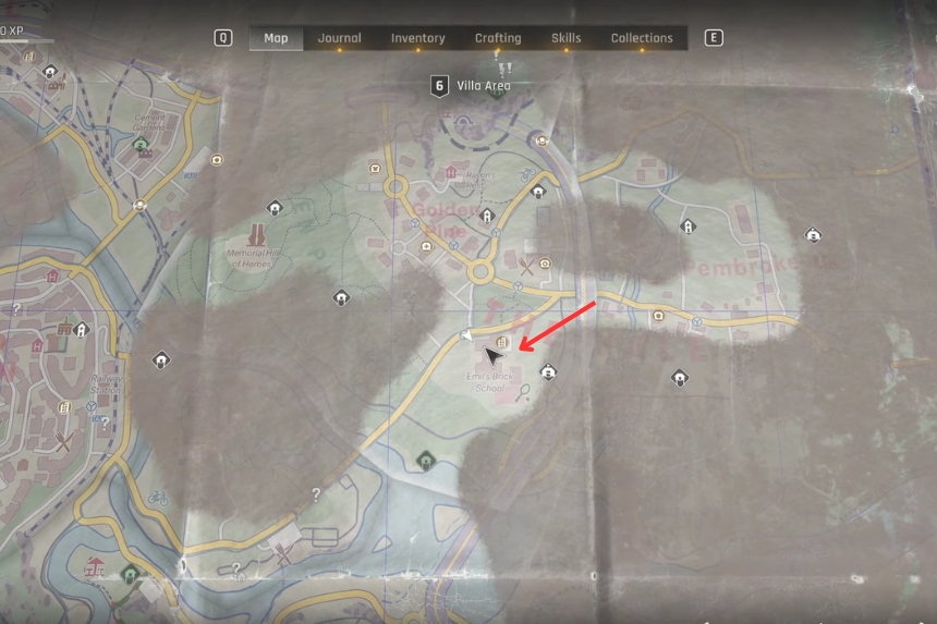 Located in Emil’s Brick School in the Villa district. Go into the room with the whiteboard puzzle — solve it to find the safe code, and the safe is just nearby.