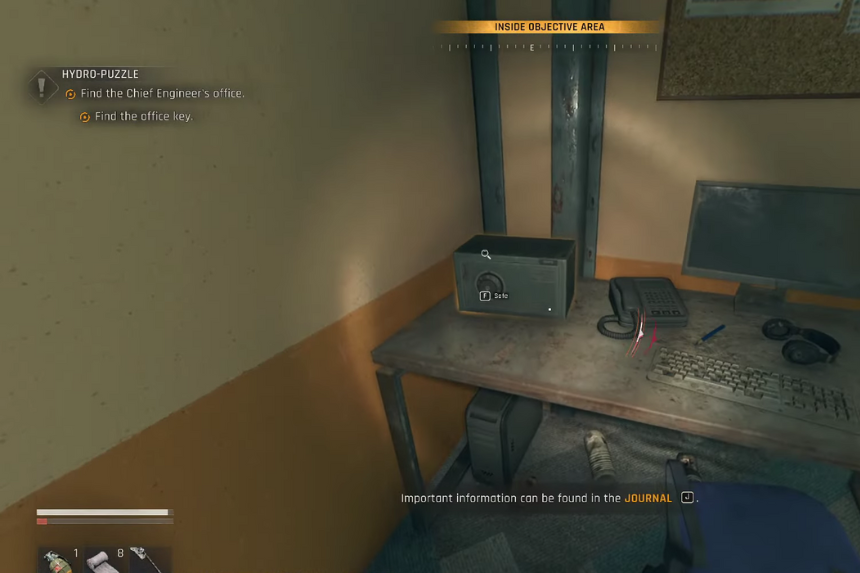 Located in a warehouse filled with desks and cupboards. Search for the journal on the desk as an indicator of where the safe is hidden.